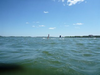 Swam in the Jim Doty Memorial Swim. Jim was an older New England open water swimmer that reinvigorated open water swimming in the Boston harbor and the Boston Light Swim. He died last year. I never met him. This swim is hosted by his family in his honor.