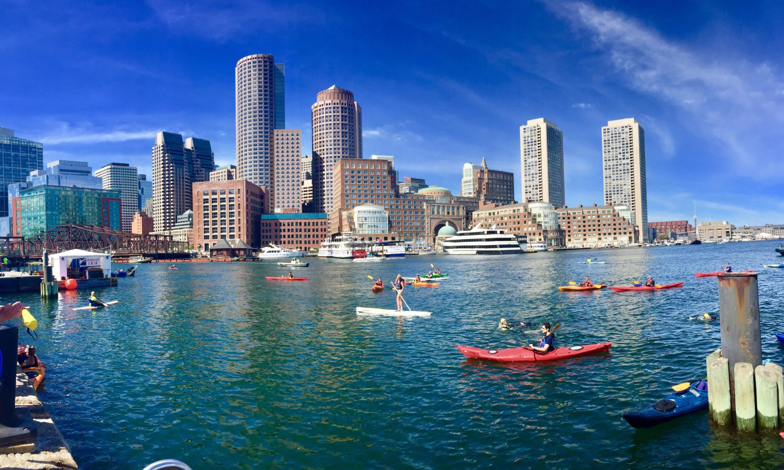 We waited about 30 minutes in the park before visiting with other swimmers and listening to the final race briefing. Eric and I self seated ourselves in the first wave that went off at roughly 11:30am. It’s dock start with 75 swimmers per wave. It was a bit crazy at the start but the crowd thinned nicely by the end of the pier. Eric pulled away, quickly as expected. Sticking to the game plan I sighted off the right corner of the Moakley Courthouse. The water felt great and I knew I was right on course when I swam through the sailboats and saw the finish line approximately 500 meters away.