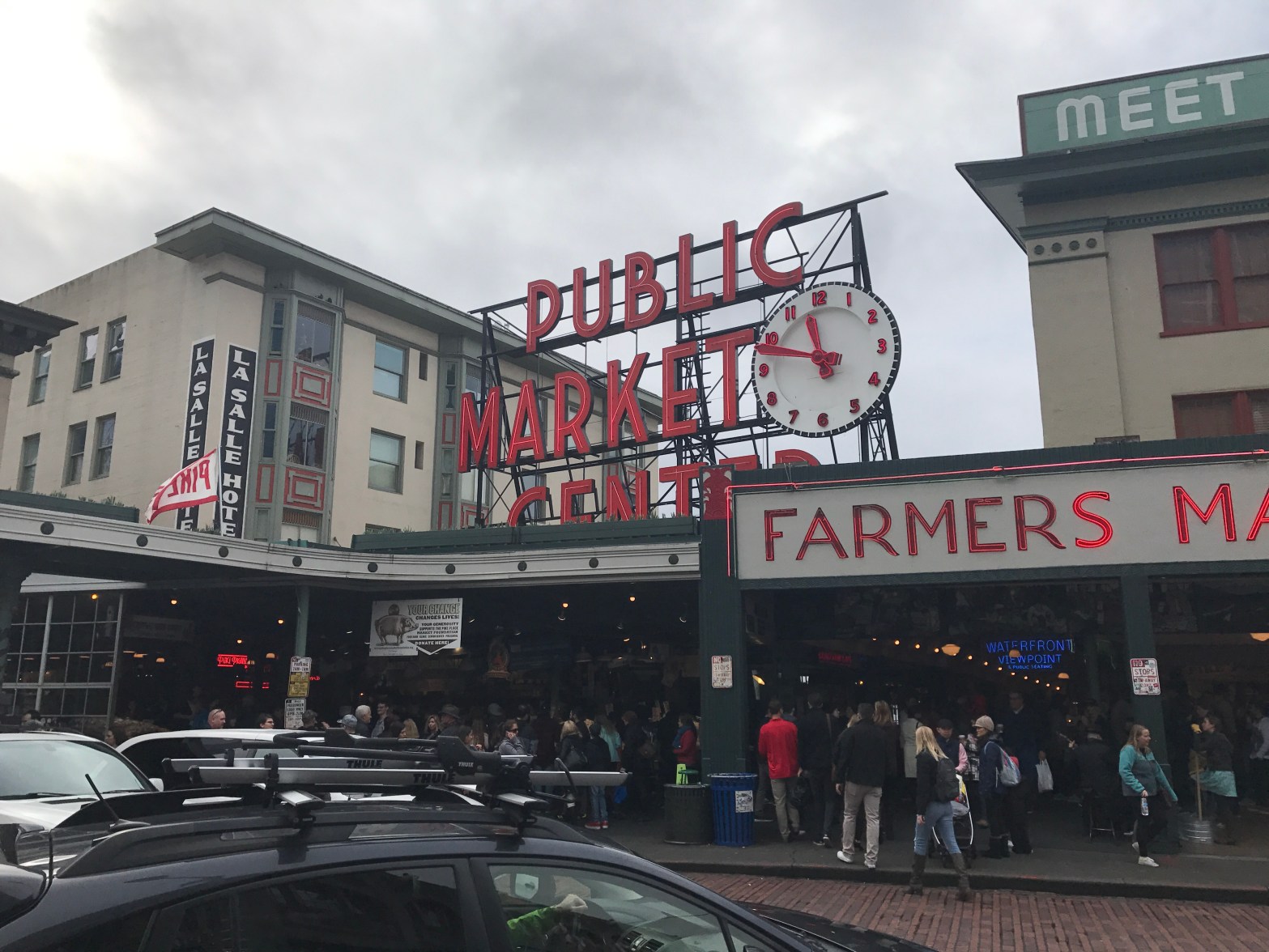 The first pool was the swanky Bellevue Athletic Club on the east side. I was a guest of my good friend Mark a long time member. It’s a full service club with multiple weight/cardio rooms, racquet courts, a hotel and restaurant, a spa and…two pools. I swam in the 25 meter competition pool next to the local club team. Across the bulkhead was a 25 yard warmer and shallower therapy pool. It took me a few hundred yards during warm up of tight send offs to realize I was in a meter pool. Easing back into the routine in luxurious surroundings was definitely the way to go. A good workout, a steam bath and breakfast treated by Mark made it a good start to a Presidents Day sightseeing in Seattle. A trip to Pikes Place and lunch with Connor were a couple of the days highlights.