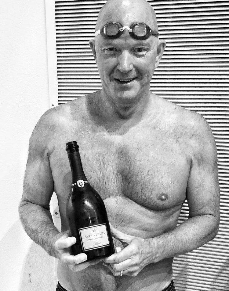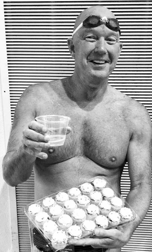 We had an abbreviated Coach Bill workout and got out early to celebrate. We tried to be discrete however I am sure the lifeguards turned a blind eye to our shenanigans.