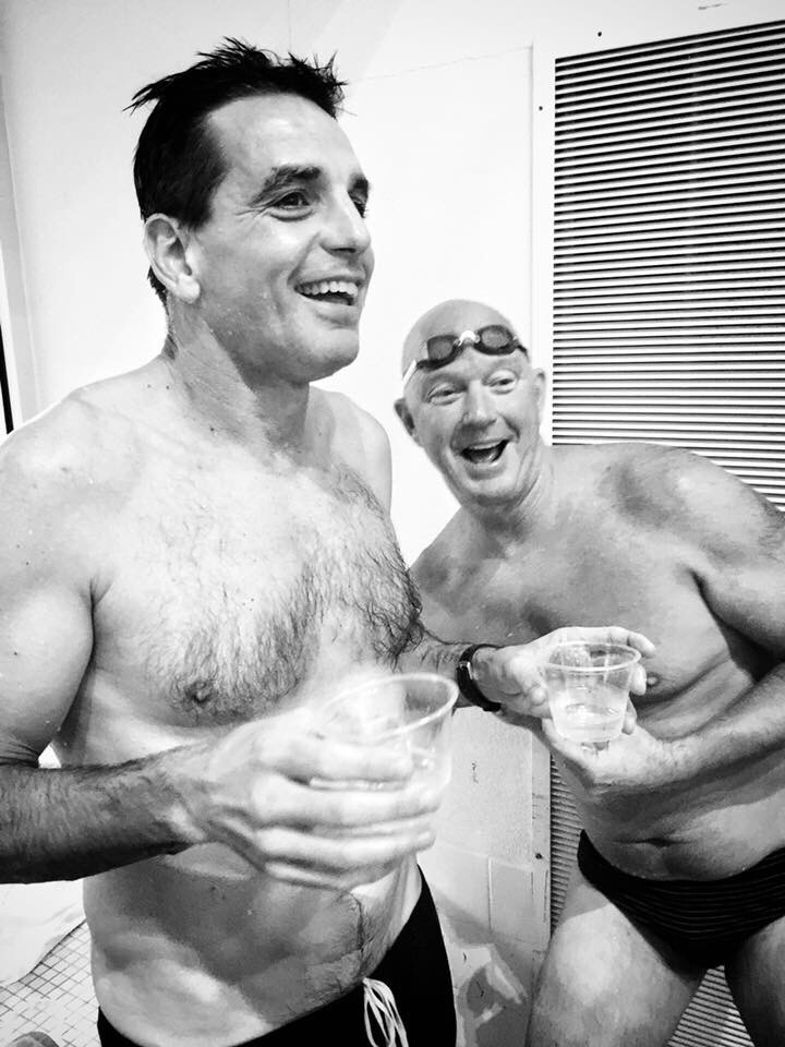 We had an abbreviated Coach Bill workout and got out early to celebrate. We tried to be discrete however I am sure the lifeguards turned a blind eye to our shenanigans.