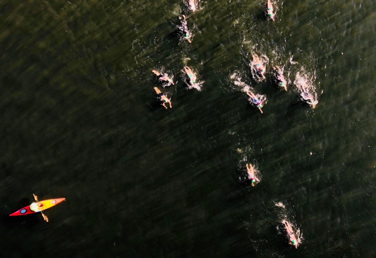 The river was calm and glassy as I took off in the first wave in a field of 100 swimmers.