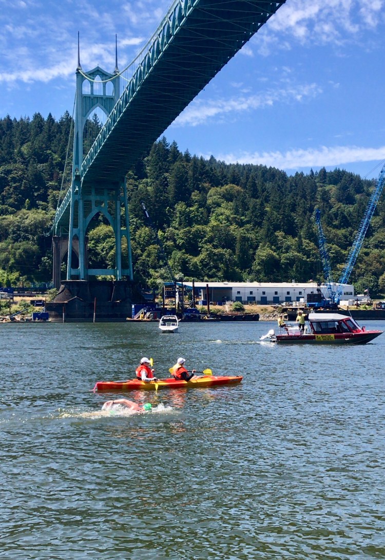It was smooth sailing (swimming) as we approached the Ross Island Bridge and downtown Portland despite a large barge that caused some momentary confusion.