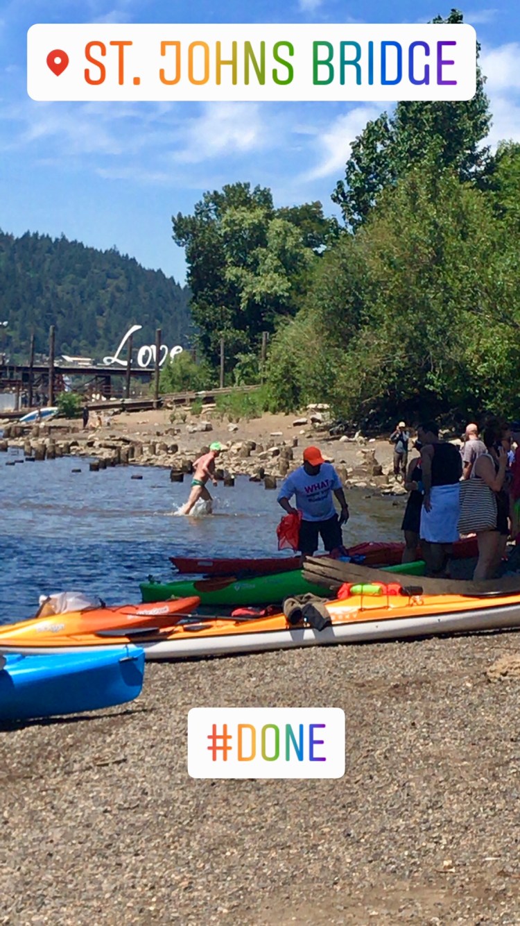 Quitting was never an option. I thought often about my friend who died two days before the swim and her family and it certainly put my small suffering in perspective*. I finally reached the St. Johns Bridge and Cathedral Park after 5 hours and 18 minutes (an hour longer than expected). It was very much a welcome sight to see the bridge’s twin towers. I stumbled on to the beach with cheers from my Oregon family that was patient enough to wait for me to finish.