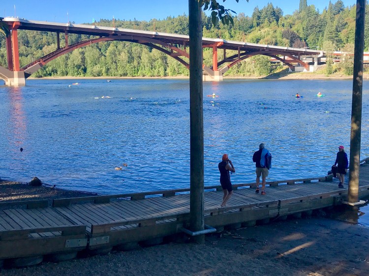 I squeezed in a pre-race reconnaissance swim with my friend Cindy, Queen of the Willamette River swimming and founder of Oregon Wild Swimming. She shared with me some pre-race tips, guidance and river lore. The river temp felt wonderful.