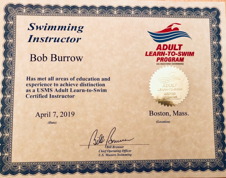 Four days later I went to pool #121 at the Egan Center in Milton, MA to become a certified Adult Learn To Swim Instructor. The Egan Center is home to the Shamrock Swim Club and its 25 yard pool. It’s a really nice facility with lots of big windows and a nice sized dry land area for the swim team.