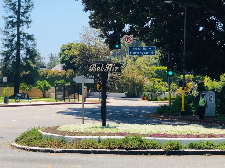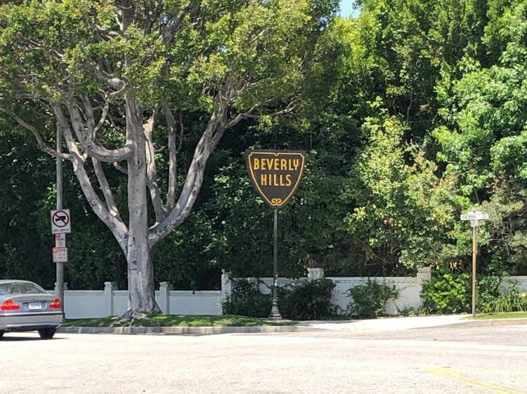 The boulevard was more windy and the homes were certainly more grand than where I started my morning as we entered Bel Air.  Again, musical inspiration hit and I played DJ Jazzy Jeff’s song Fresh Prince of Bel Air.  Nobody (buts us) walks in Bel Air…it may be because there were no real sidewalks or it may be that everyone really enjoys driving Bentley’s, Rolls Royce’s and Aston Martin’s. Its crazy!