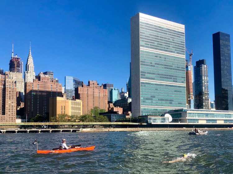 (Swimming in front of the United Nations Building)