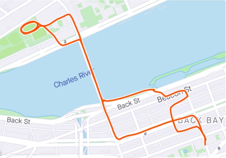 What I have enjoyed most about the new routine is the opportunity to explore and see new parts of Boston. I’ve been able to chronicle many of my walk/runs with maps and pics via Strava. See below with few highlights.