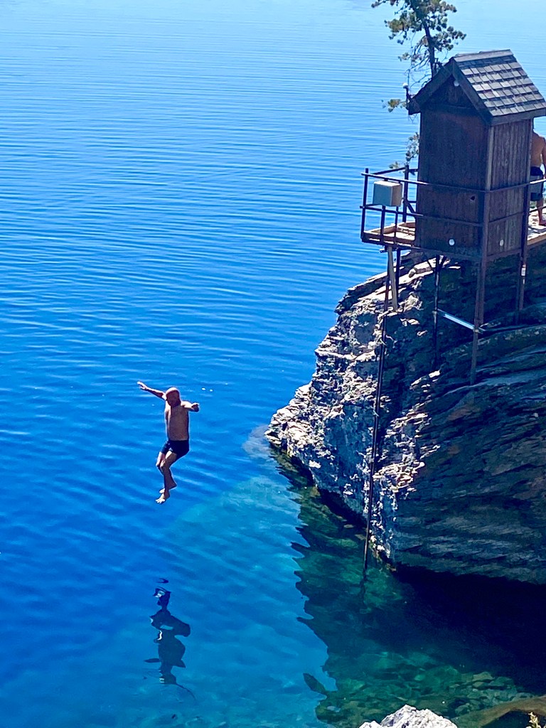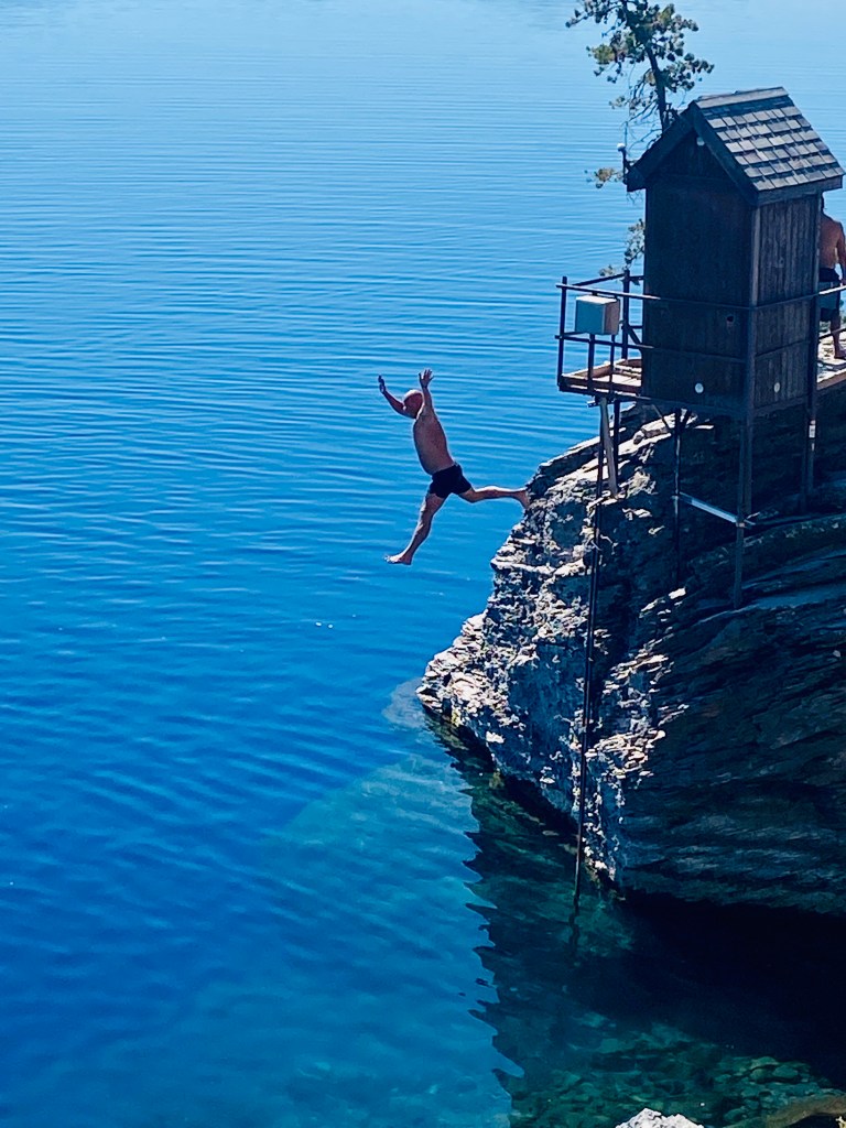 I am not wild about heights-starting blocks at the pool are about my limit. Sometimes you though you just need to suck it up and~go jump in a lake!