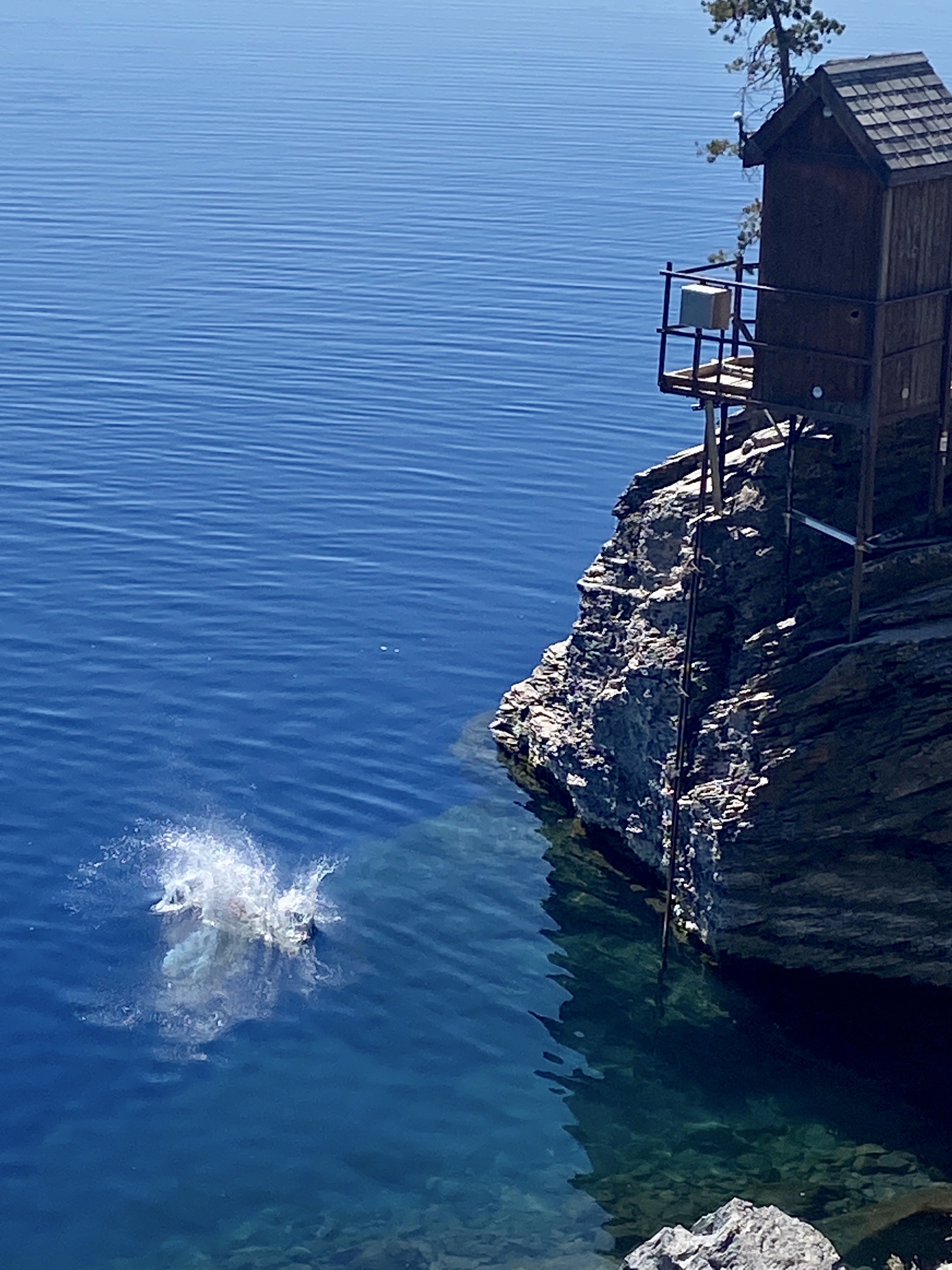 Sometimes in life you need to take a risk and take a plunge! For Shannon and I that plunge was something different for each of us. Shannon is not fond of cool water. Gradually she eased in. At first it was just her feet, then ankles and then all of a sudden she plunged in-what the heck? I was stunned. Her reply, “how could I hike all the way down and not jump in to Crater Lake?”