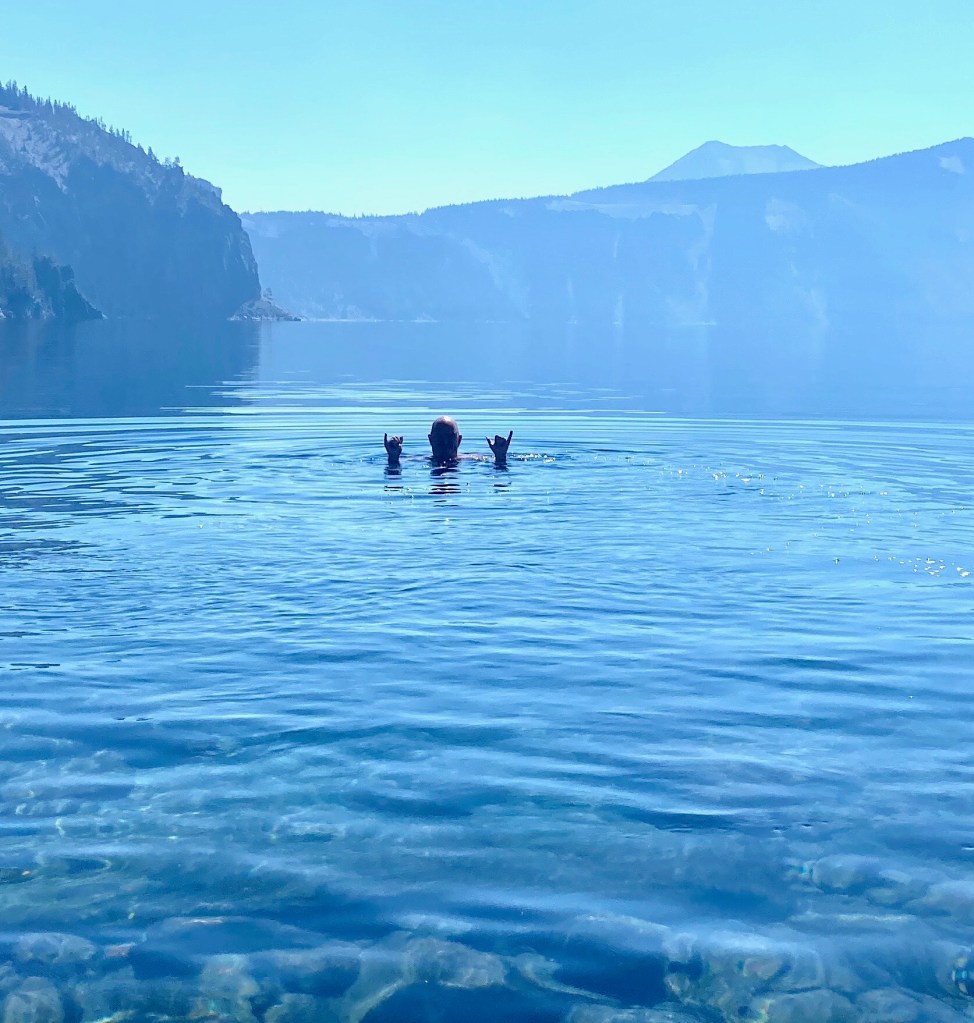 Yes-it was a caldera swim in Crater Lake! Crater Lake was formed by the collapse of the volcano Mt. Mazama. Crater Lake is the deepest lake in the United States (2,148 feet) and the 7th deepest lake in the world. The water is such a clear deep blue color.