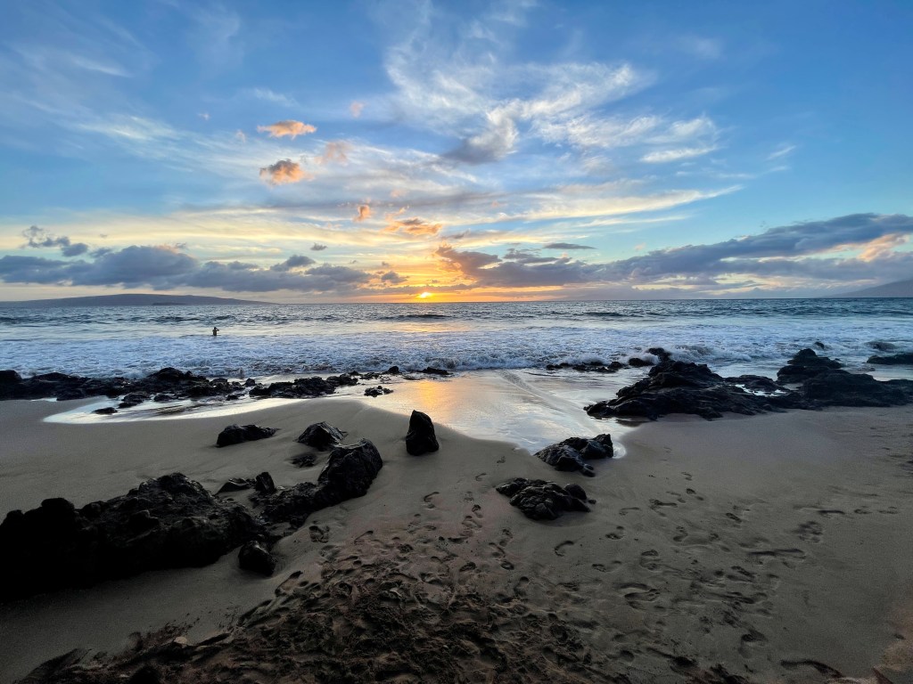 Sun, warm water gf and surf…you bet I spent a good deal of time in the water. Hey C We started our u in Wailea area a place we don’t know super well so it was fun to check out some new swimming holes. The beach that I enjoyed in particular for some decent open water swimmingj was that Maluaka j hi Beach.