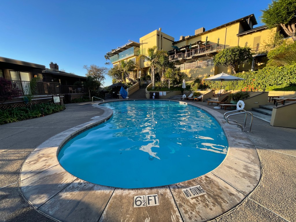 We drove down a very windy PCH and enjoyed the dramatic coastline to Big Sur. Stretching our legs a couple times we had a couple of easy hikes at the local state parks. Post hike to soothe the soul I took a dip in the hotel pool. While not a lap pool (I circled the perimeter a few times) it did the job. Even better was the hot tub looking at the craggy California coast.