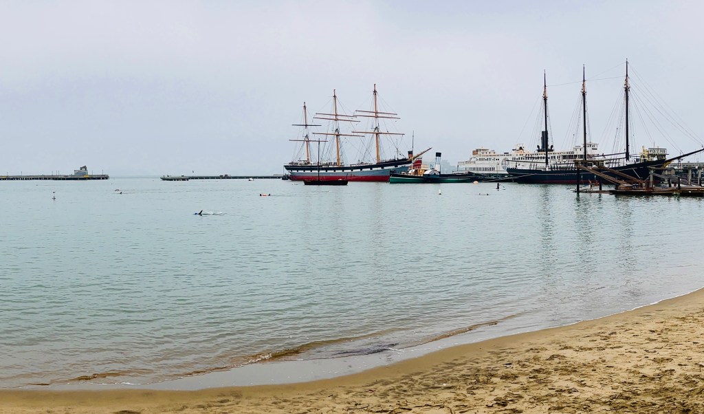 And the final highlight (highlights in no particular order😉) was a dip in the water at Aquatic Park. As you know from prior blogs (San Francisco Cold Water Training Camp-August 2017) Aquatic Park is hallowed ground for open water enthusiasts across the globe. It was a cloudy and I would say chilly day. Per usual, there were still plenty of hearty souls with and without wetsuits braving the 53 degrees water temp.