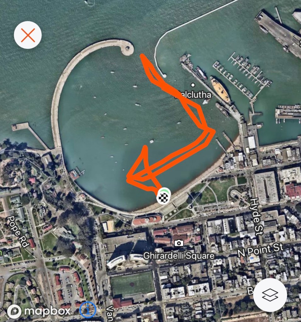 I decided with the cold water, strong king tides and swimming solo I should play it safe and not swim outside the cove to Fort Mason. I did swim a pretty cool pattern though-kinda looked like an arrow. Maybe it was Cupid’s arrow 💘-awww!