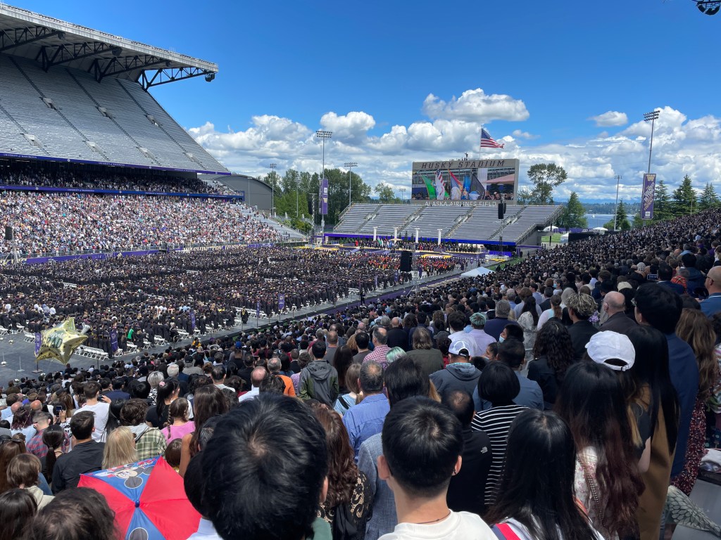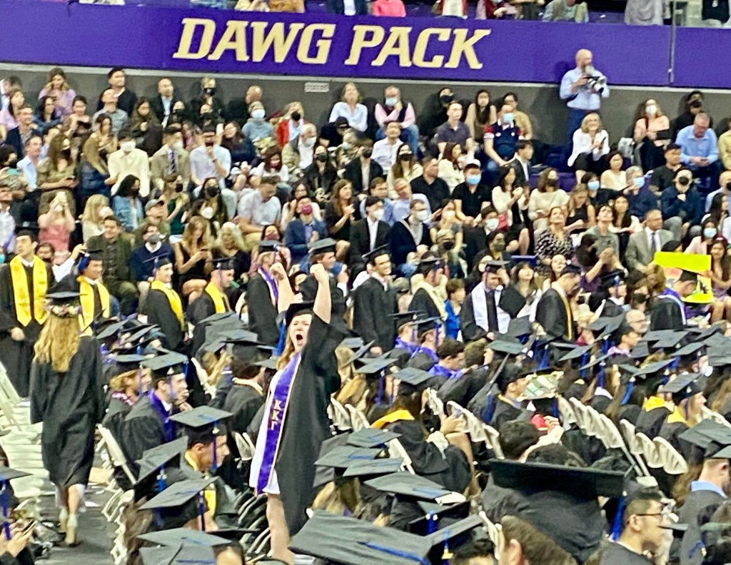 There were two graduations separated by a week; the business school graduation of 750 young adults and then the next entire university graduation of 7000+.
