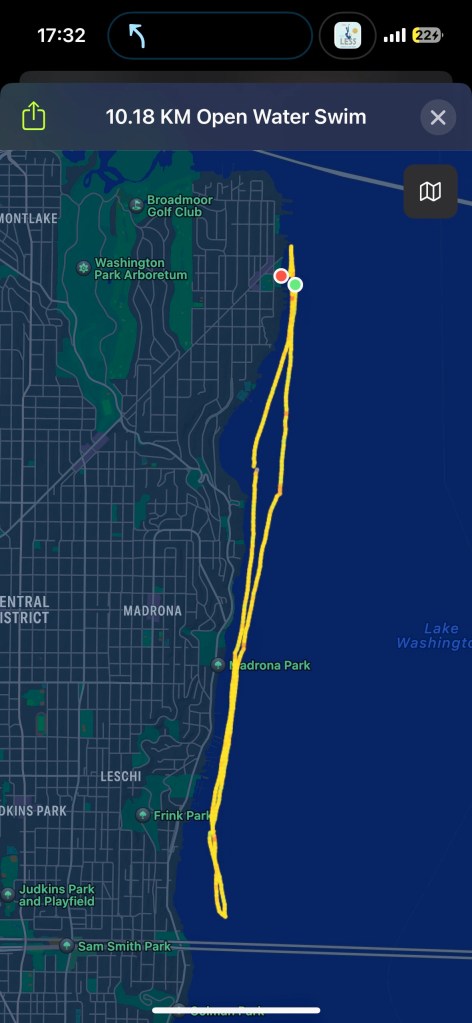 Jane and I did it-10k/6.2 miles! It was such a fun and iconic swim to do in a spot with such strong memories and most definitely with a friend with UW ties and to have our kids as support.