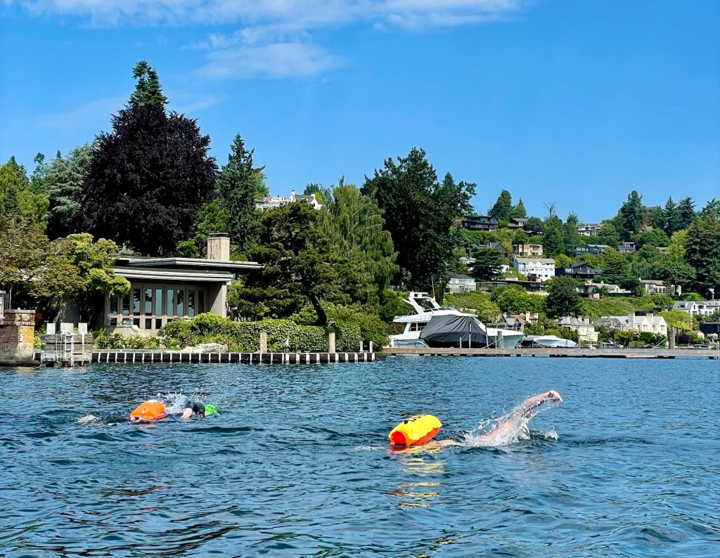 The highlight of training for Tahoe was a June training trip to Seattle to swim from the 520 Bridge to the I-90 bridge-10k. I swam with our friend Jane from Bend a former UW swimmer. Our support was Ryan and Courtney and her son, Kevin. It was fun to swim in Lake Washington with our kids and the memories of the surrounding UW area. Jane has since moved to Sequim. I miss her. (see blogpost-Bow Down to Washington!).