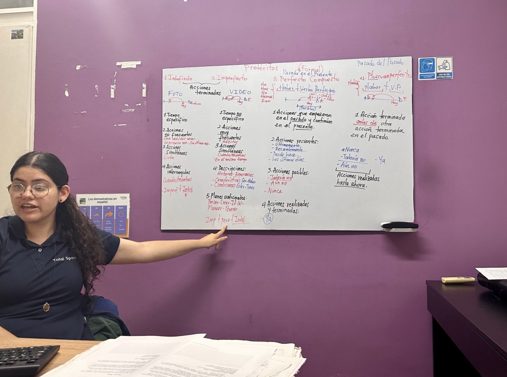 Clase era 9:00am-1:00pm cada dia con un 20 minuto descansar. Afortunadamente Shannon y yo éramos en clases diferente 😳. El personas y maestras y estudiantes a Total Spanish fue fantástico! Nos gustó mucho! Mi maestra fue Estefanía y ella es muy, muy paciente y indulgente. Un dia yo no conjugué el verbos; pedir, perder, poder y poner en el indefinido para el vida a me-omg!