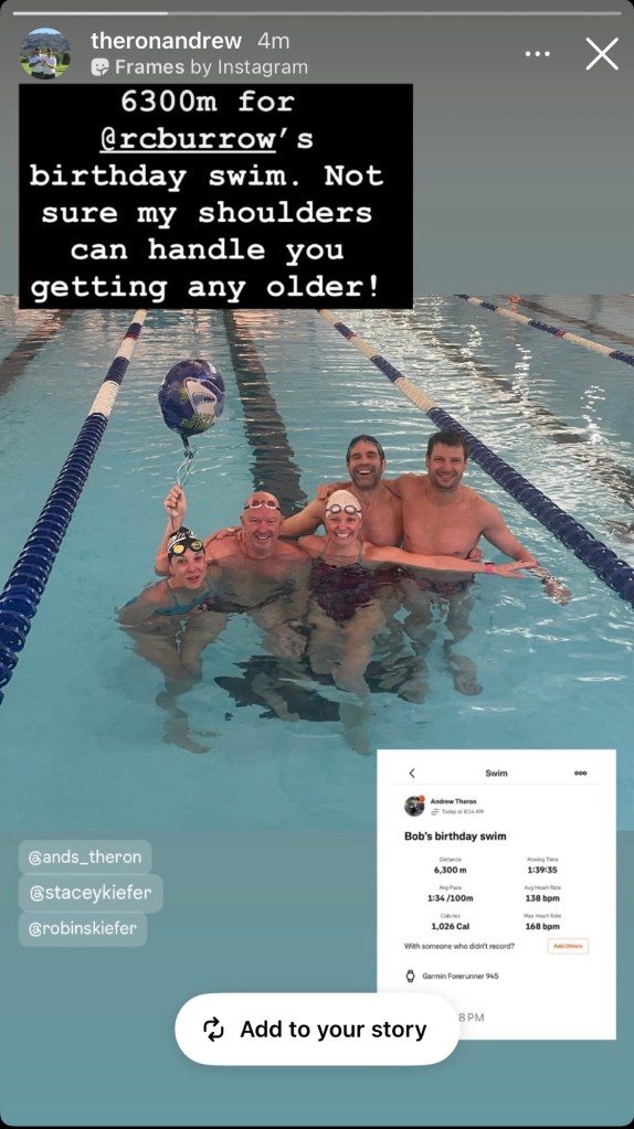 I started this blog when I turned 50. So if you take 50 and add 12 as referenced above…well that is 62. Yup I’m 62! I don’t feel it (most of the time). Every year I try to swim my age on or around my birthday. I think I do it most every year however this year was particularly memorable and fun!